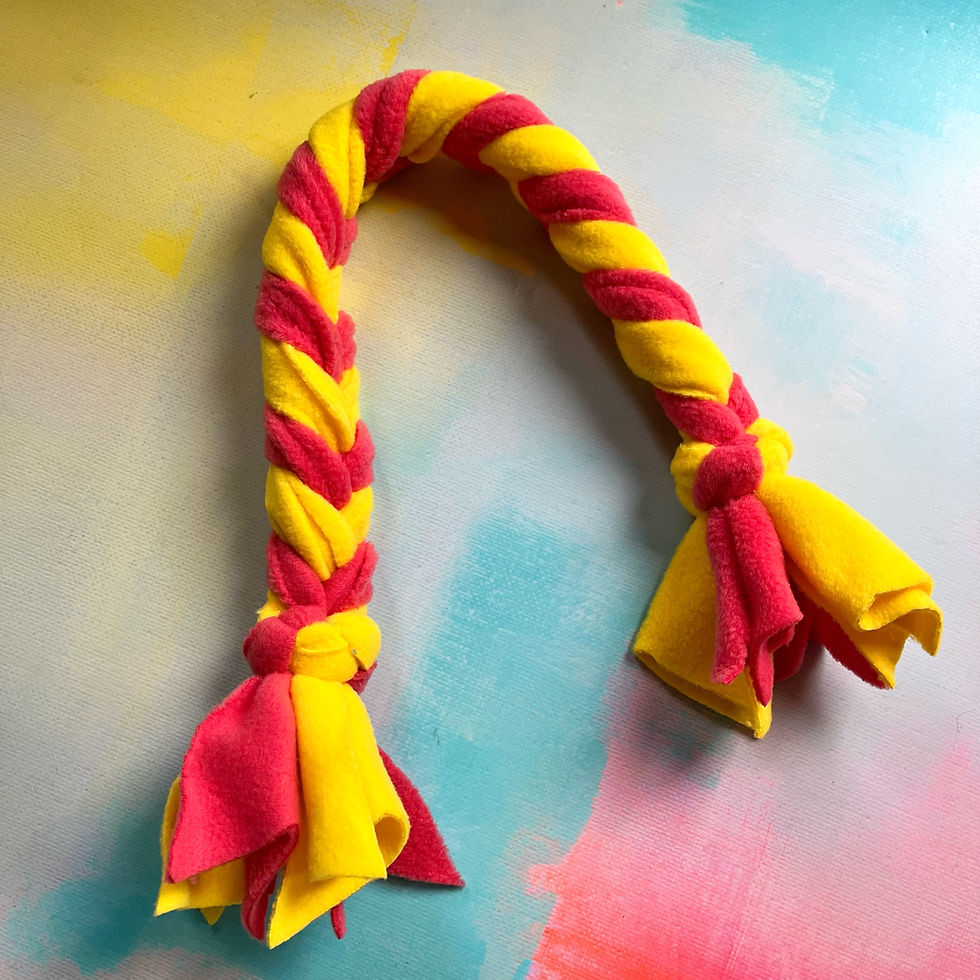 This toy is always to be used under supervision! NOT to be used as a chew toy but as an engaging toy for pup & human for lots of tug of war! Always check toys regularly for any signs of wear and tear before giving them to your dog. Remember - no toy is indestructible!